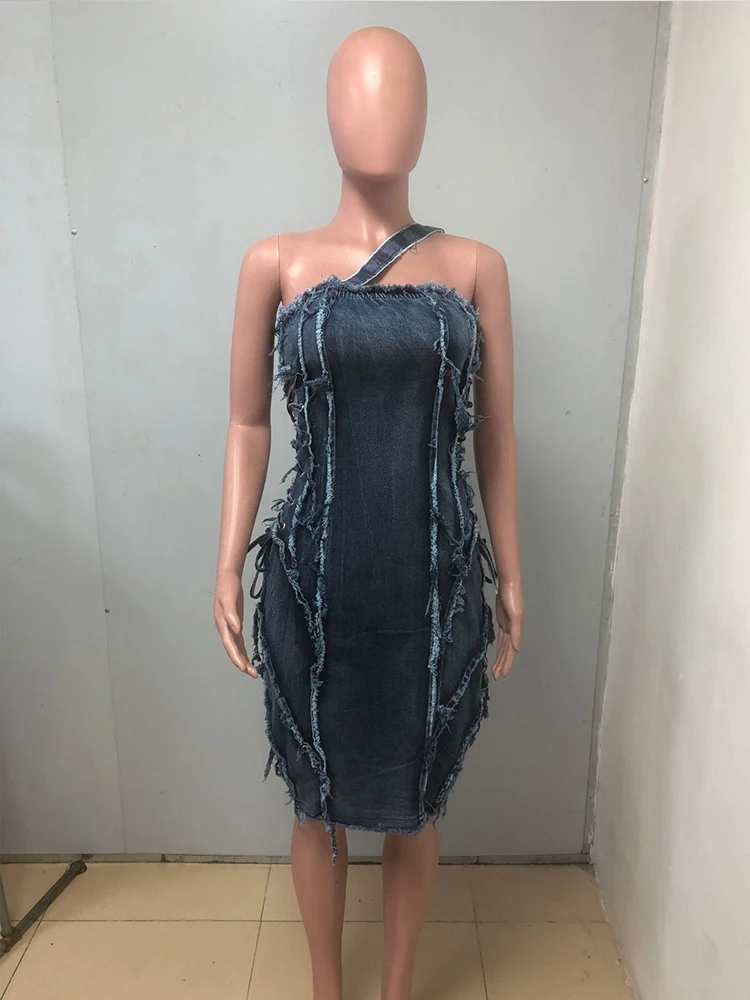 Denim Dresses for Women 2023 Summer Chic and Elegant Woman Dress Sleevess Sexy Short Daring Dresses Wholesale Drop ship